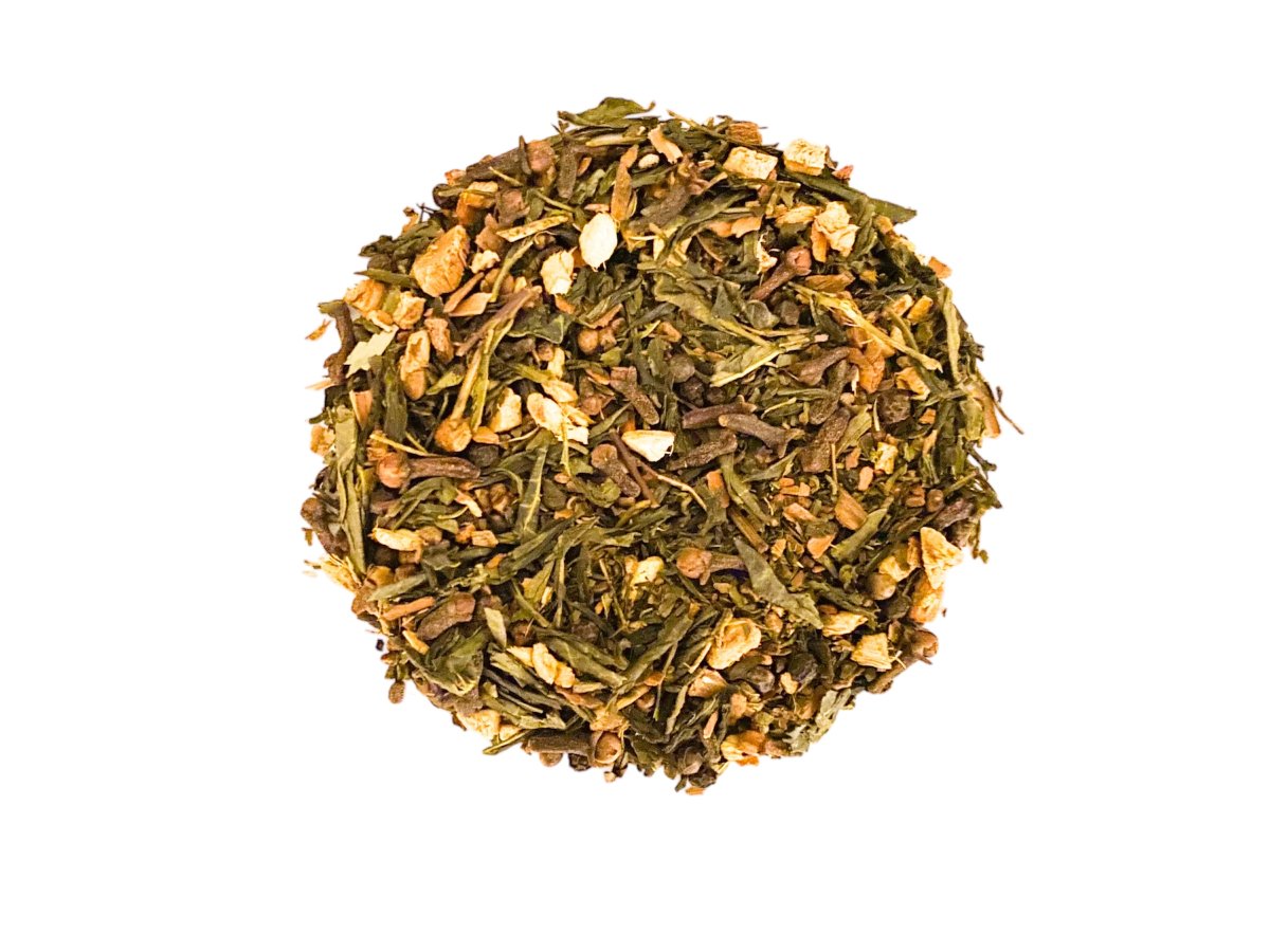 Ett grönt chai-te med smak av kardemumma, ingefära, kryddnejlika, svartpeppar, kanel och mynta.
