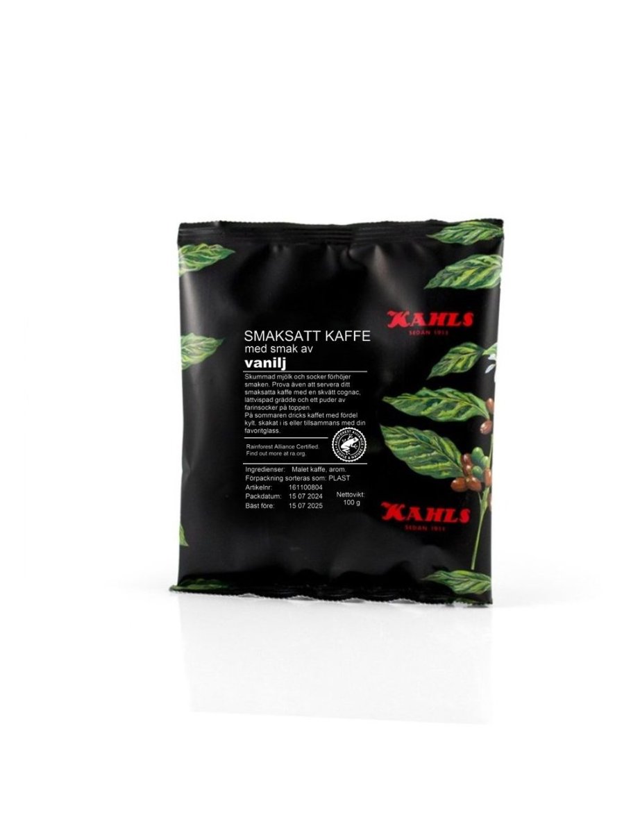 Kaffe som är smaksatt med vanilj. Påsen innehåller 100 gram bryggmalet kaffe och är gott att njuta av som det är, eller med en skvätt mjölk.
